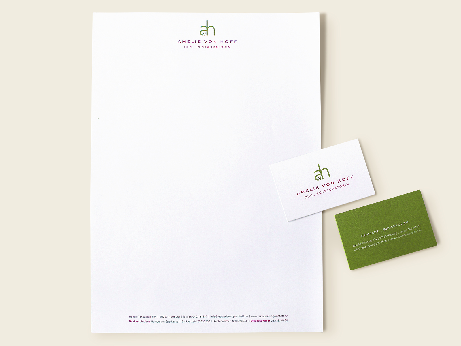 Logo Design und Briefschaft für die Restauratorin Amelie v. Hoff