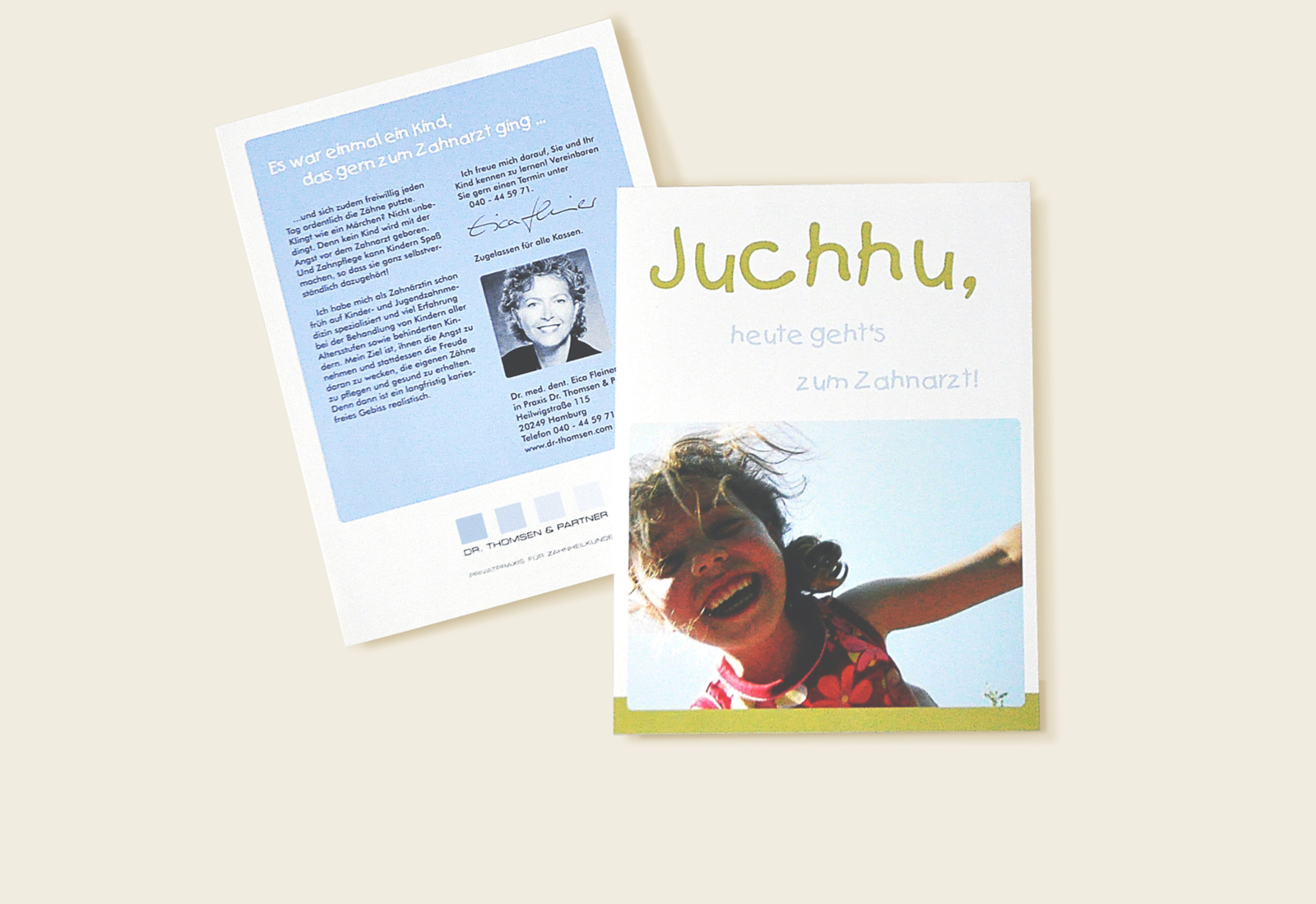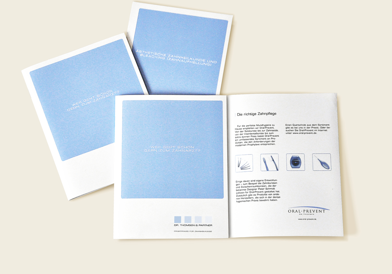 Praxisbroschüren für Dr. Thomsen & Kollegen, Praxis für Zahnheilkunde mit dem Schwerpunkt Parodontologie/Prophylaxe.