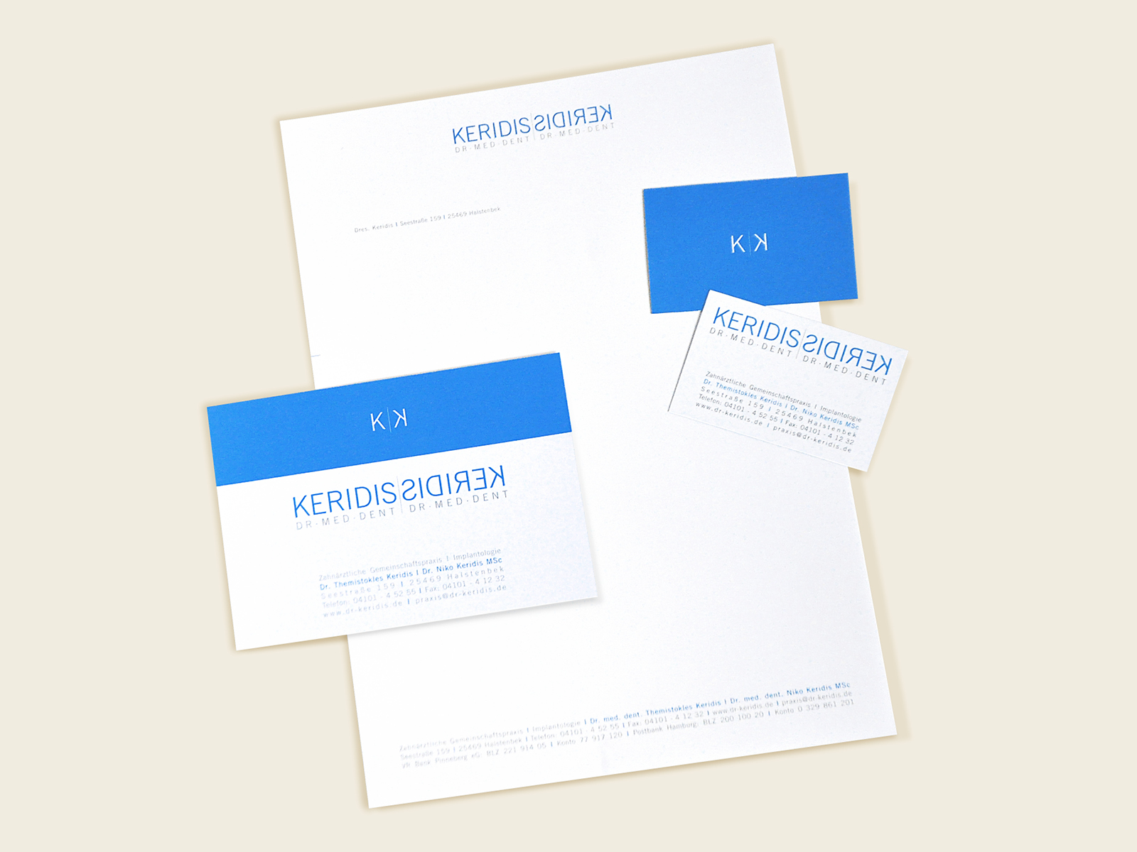 Logo Design, Briefschaft und Praxisausstattung für die Zahnarztpraxis Dr. Keridis & Keridis