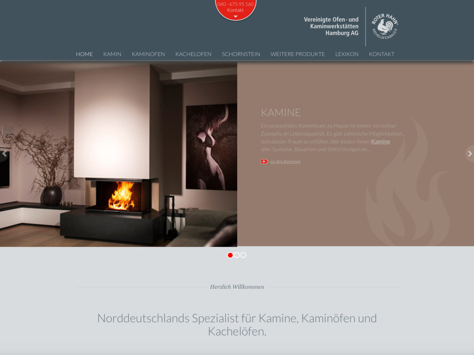 Website für die VOK, Vereinigte Ofen- und Kaminwerkstätten Hamburg AG